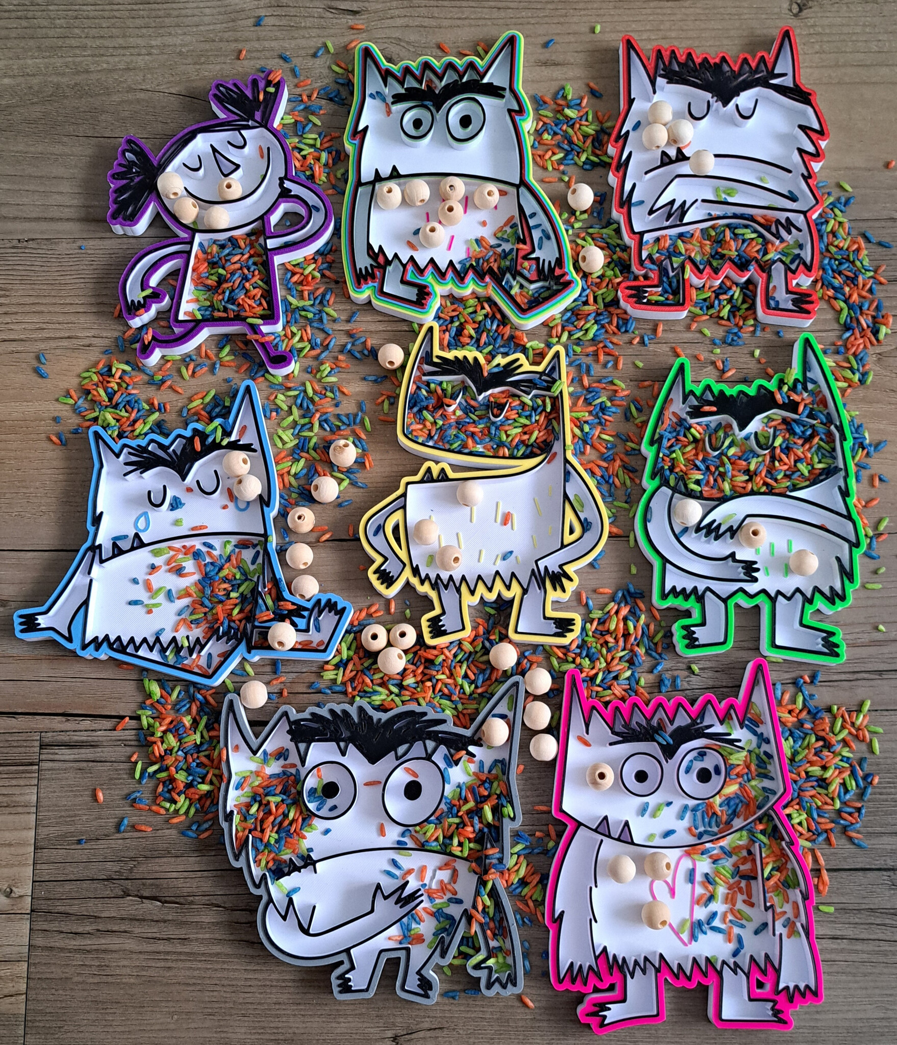 You can use them as filling or to create shapes in the sand. Fill the shapes with things like ironing beads, play rice, or pom-poms. Press the shape into the sand or stand it upright. Endless sensory fun!