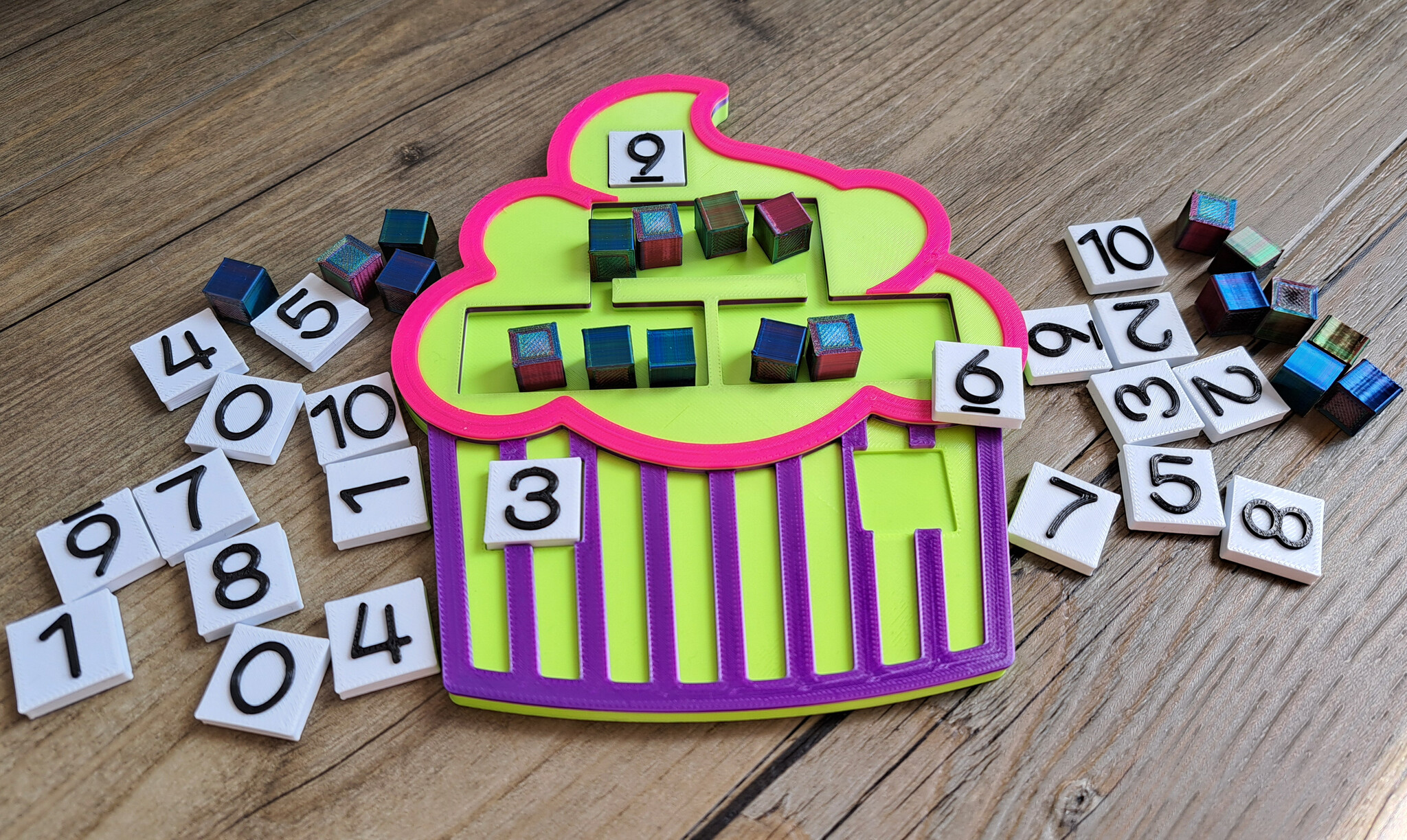 With this beautiful splitting model in the shape of a cupcake, children learn to calculate and split numbers (up to 10) in a playful way.