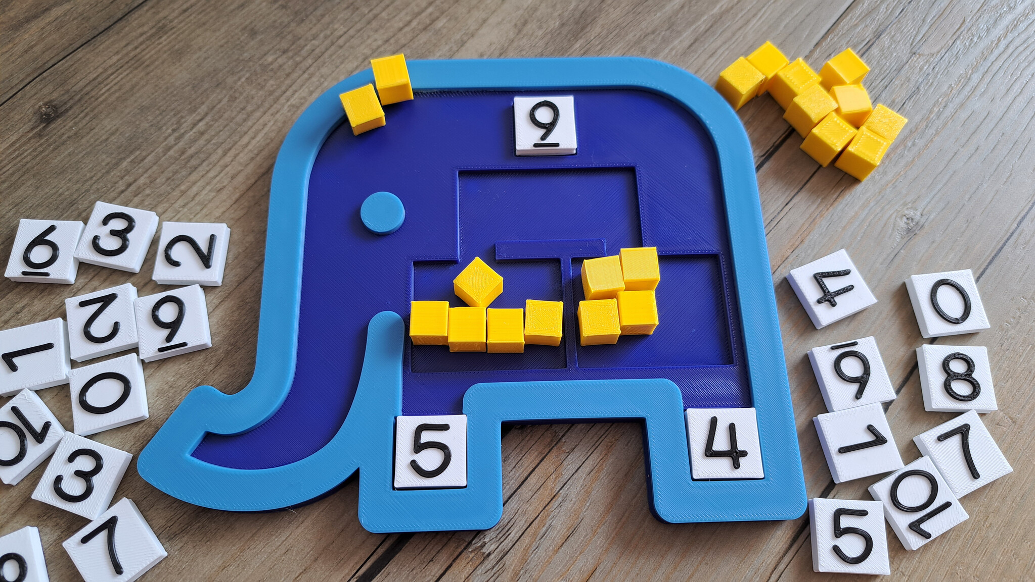With this beautiful splitting model in the shape of an elephant, children learn to calculate and split numbers (up to 10) in a playful way.
