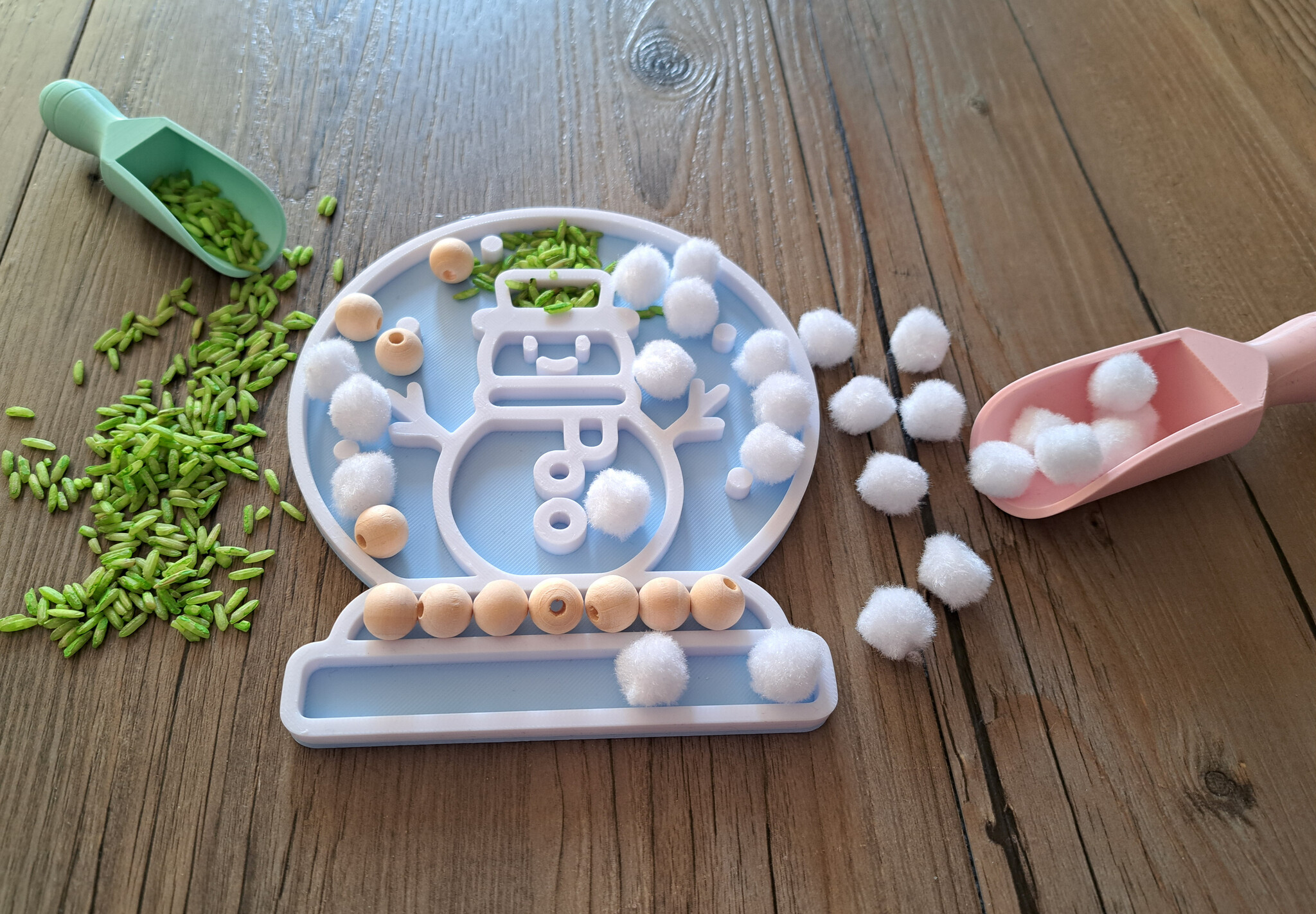 Nice Christmas filling mold* in the shape of a snow globe with snowman representation. Fill with nice materials or press in the sand. Nice for at the play table/playtray. Can withstand water, let it dry well afterwards.