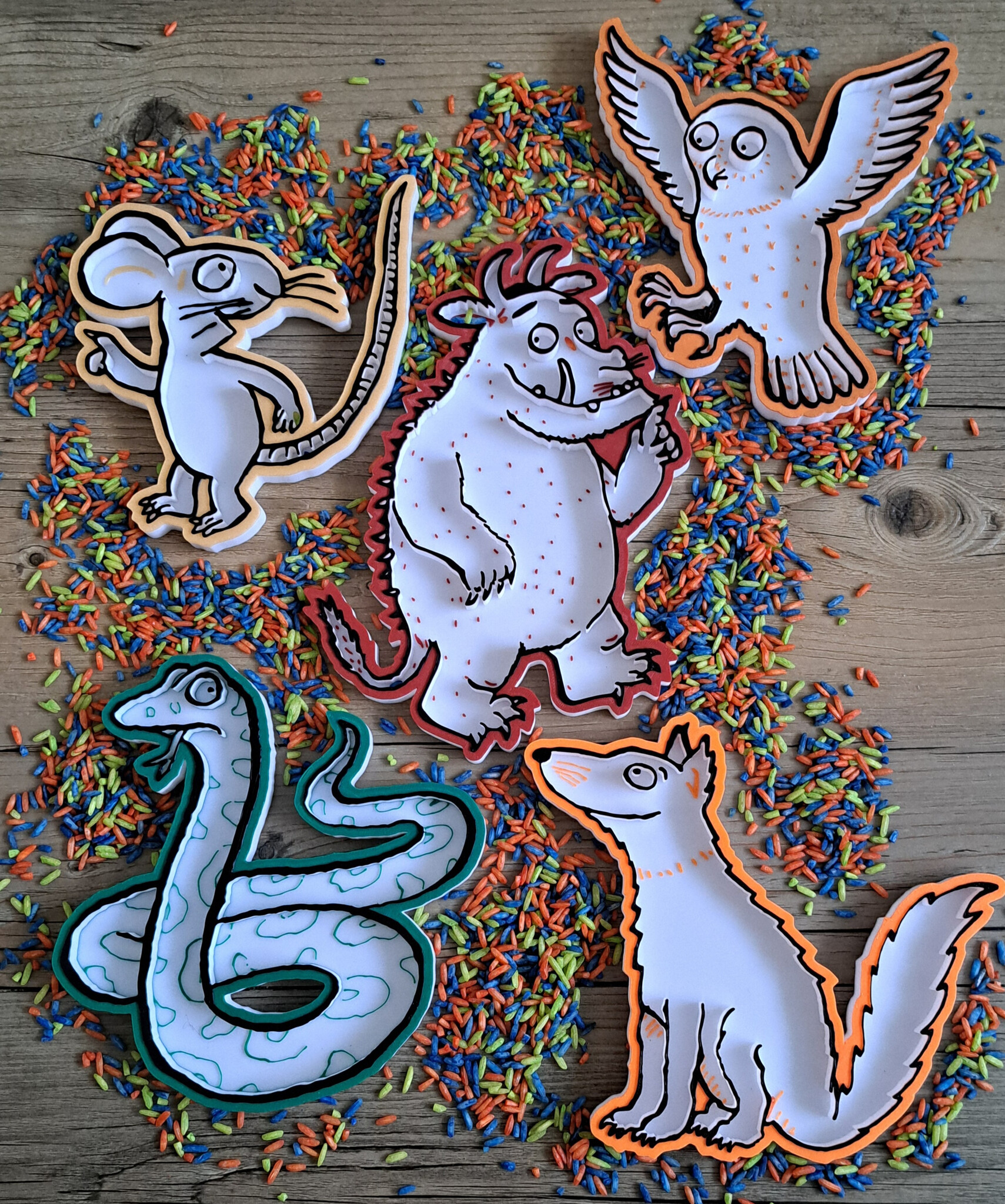 5 gave vulvormen van figuren uit het bekende boek De Gruffalo. Gebruik ze bijvoorbeeld met gekleurde rijst of druk ze in het zand, goed voor uren speelplezier! Sensory play, sensorisch spelen