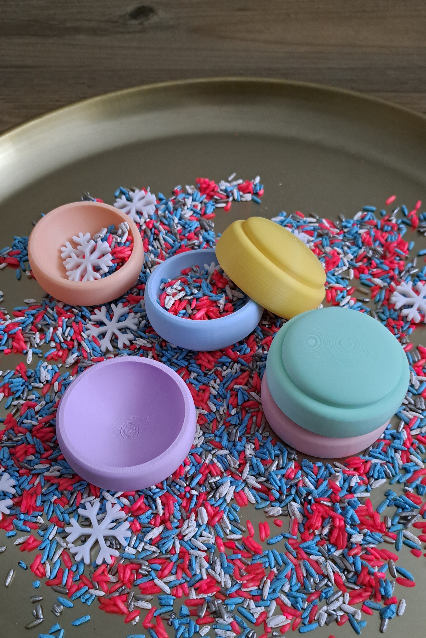 6 Leuke mini stap/stapel stenen voor sensory play in vrolijke pastel regenboogkleuren. Gebruik ze als bakjes en vul ze met allerlei speelmateriaal, zoals gekleurde rijst of mini figuurtjes, of bouw er een toren van.