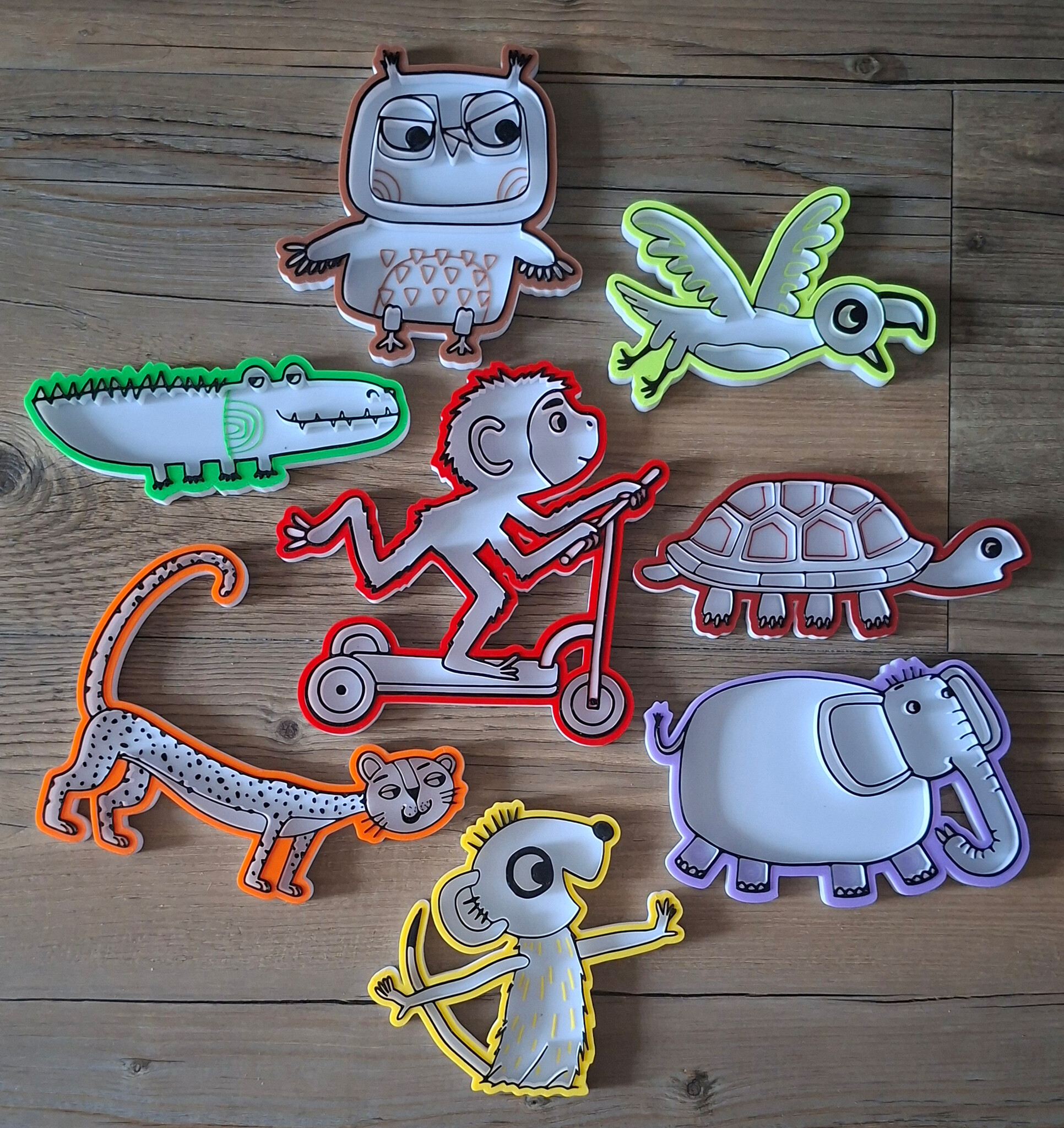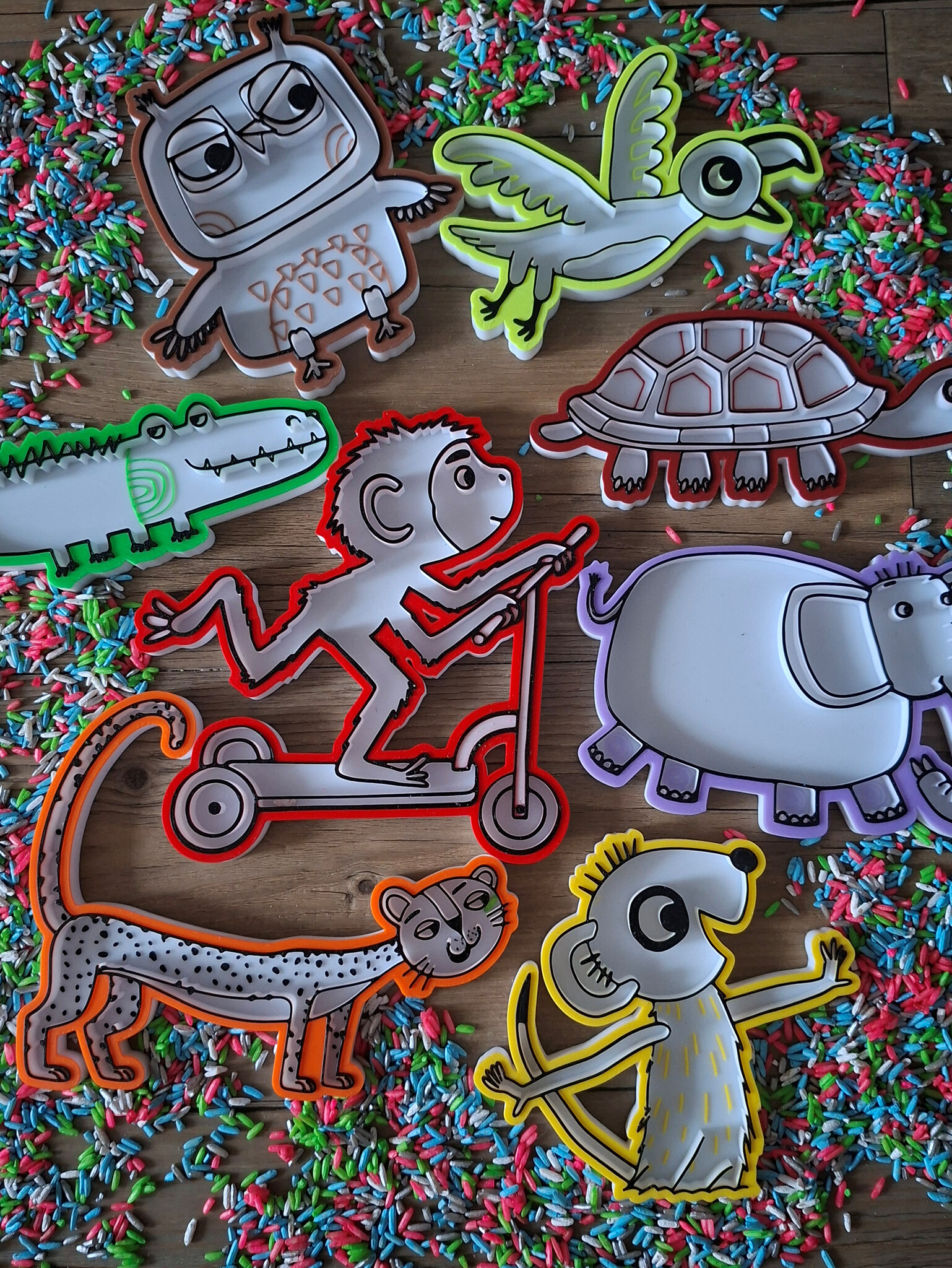8 gave vulvormen van figuren uit het prentenboek van het jaar 2026, Kleine Aap. Gebruik ze bijvoorbeeld met gekleurde rijst of druk ze in het zand, goed voor uren speelplezier! Sensory play, sensorisch spelen