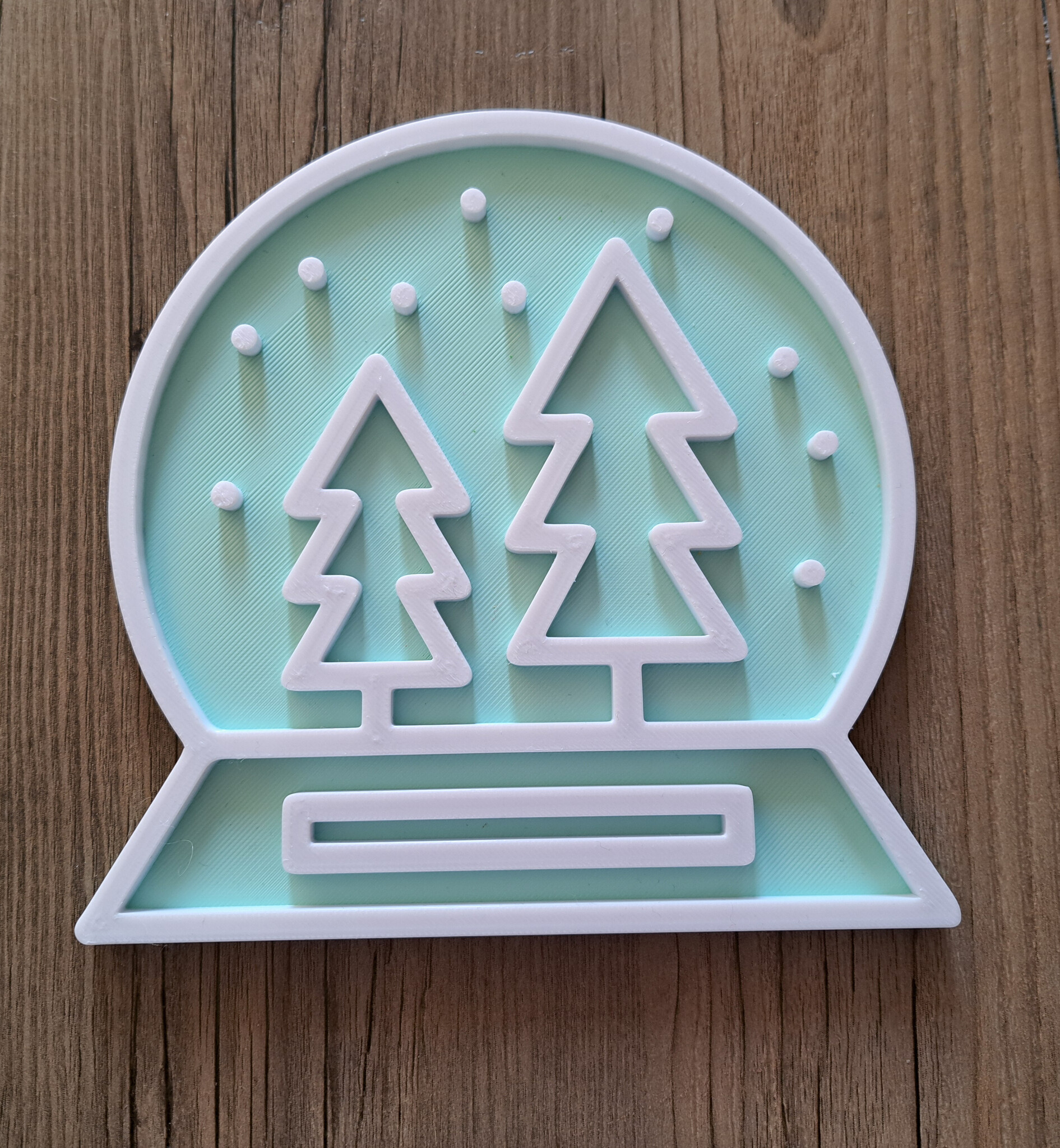 Leuke Kerst vulvorm* in de vorm van een sneeuwbol (snowglobe) met kerstboom voorstelling. Vul met leuke materialen of druk in het zand. Leuk voor bij de speeltafel/playtray. Kan tegen water, daarna wel even goed laten drogen.